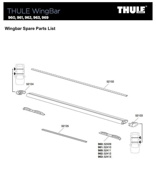 GENUINE THULE WINGBAR REPLACEMENT RUBBER STRIP 52102 FITS 960,961,962,963,969