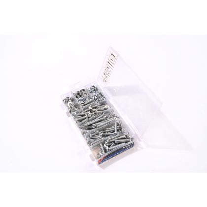 Washers: 5mm (x110), 6mm (x40) & 8mm (x15). Nuts: M5 x 0.8mm (x35), M6 x 1mm (x20) & M8 x 1.25mm (x5). Bolts: M6 x 1mm x 30mm (x20), M6 x 1mm x 50mm (x15), M5 x 0.8mm x 30mm (x35) & M8 x 1.25mm x 40mm (x5)
