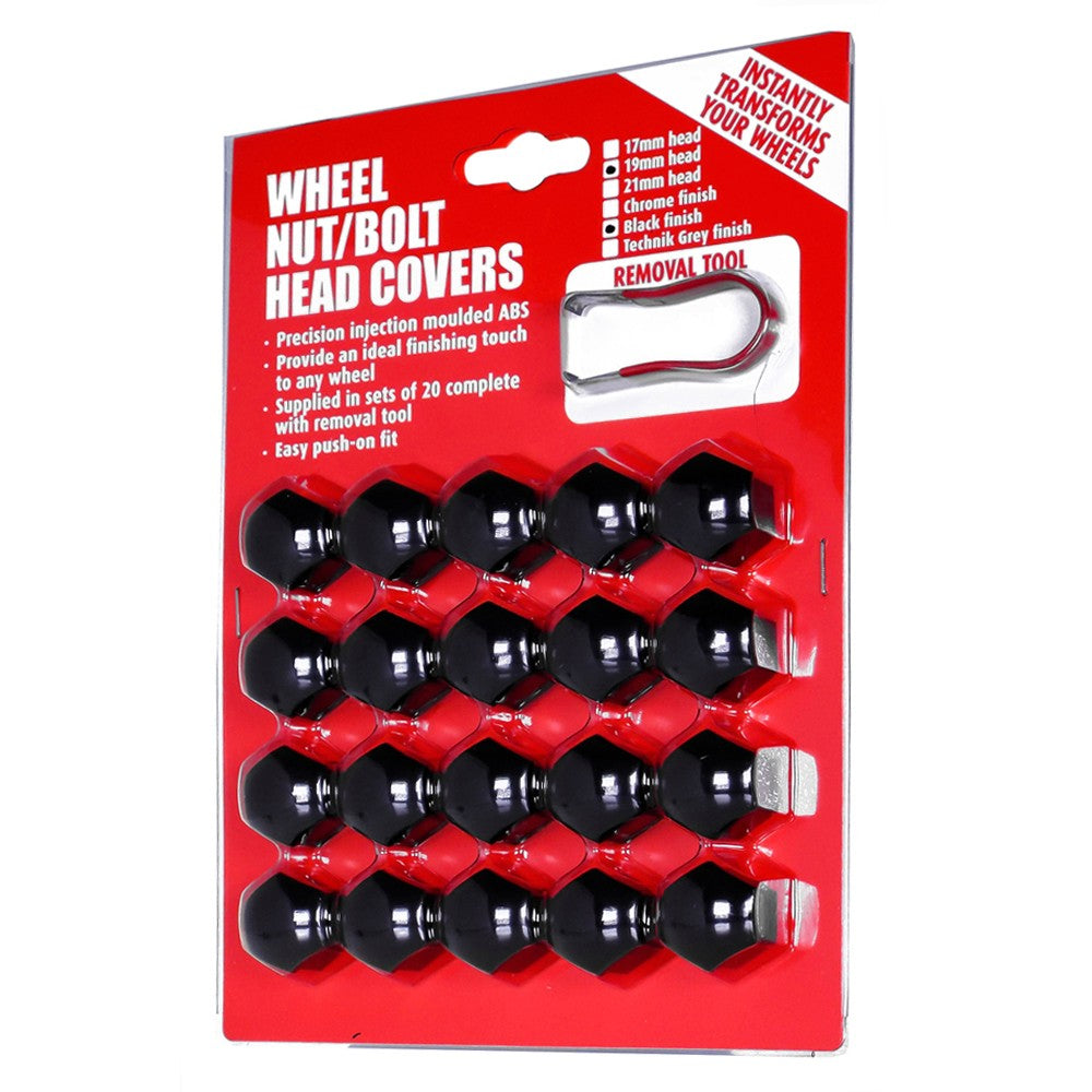 Black AIP Push-On Nut & Bolt Head Covers- Supplied in sets of 20 pieces with a removal tool in an attractive blister pack.