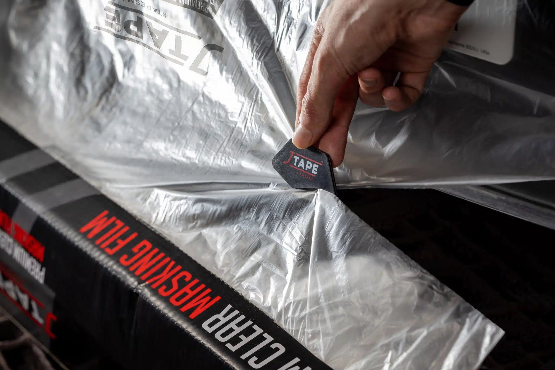 JTAPE Premium Masking Film Cutter features a high-quality enclosed safety blade that reduces preparation time when masking. It also ensures a clean, neat cut and offers increased protection for the user compared to scissors or blades.