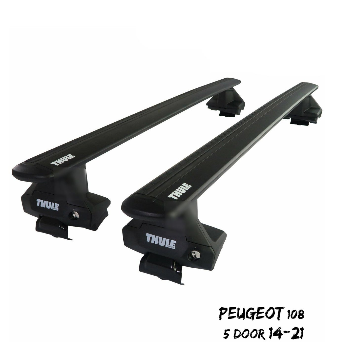 These Thule WingBar Evo Black Roof Bars are specifically made to fit the Peugeot 108 (5 Door) 2014 - 2021 without pre-existing roof bar attachment points.